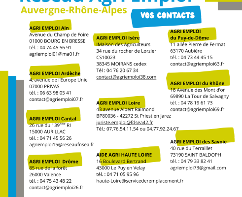 🌱 Les contacts Agri Emploi de notre région à votre service De nombreux secteurs recrutent toute l’année : élevage, maraîchage, viticulture, arboriculture,...