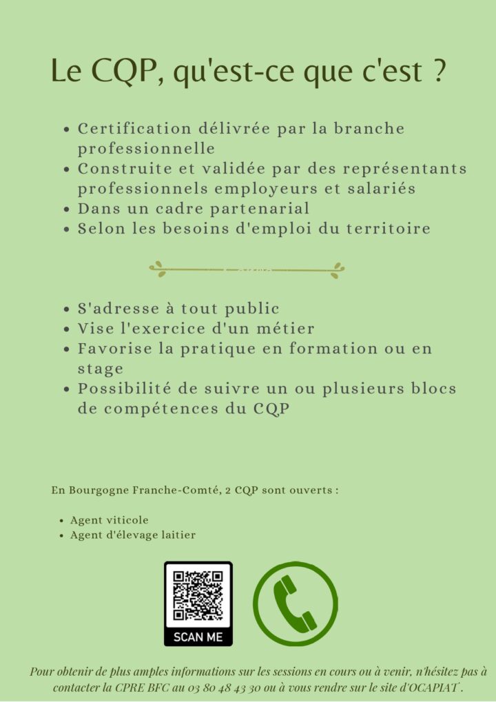 Pour plus d’informations sur les CQP, rendez-vous sur le site d’OCAPIAT