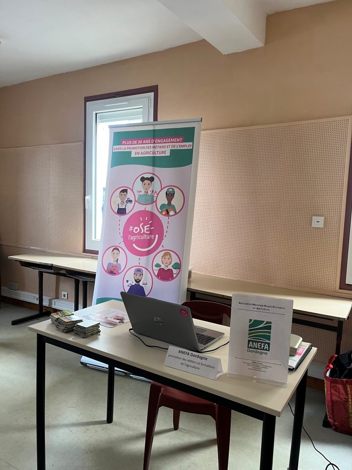 Vendredi 30 janvier, l’ANEFA Dordogne était présente au collège Jeanne d’Arc de La Roche-Chalais dans le cadre du forum des métiers. Cette intervention a permis de rencontrer les élèves et de les informer sur nos missions et actions, ainsi que de leur faire découvrir les métiers et les formations du secteur agricole. Un temps d’échange enrichissant, destiné à sensibiliser les jeunes aux opportunités et aux perspectives professionnelles offertes par l’agriculture, secteur qui recrute.