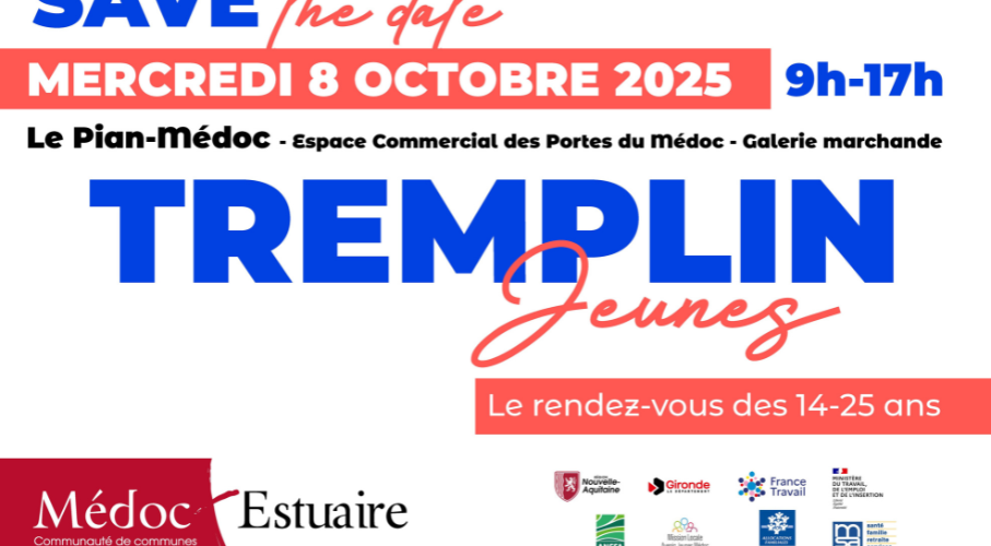 Le 8 octobre prochain, l’ANEFA Gironde participera à l’événement Tremplin Jeunes, organisé par la Communauté de Communes Médoc Estuaire, de 9h à 17h à la galerie marchande du Pian-Médoc.
